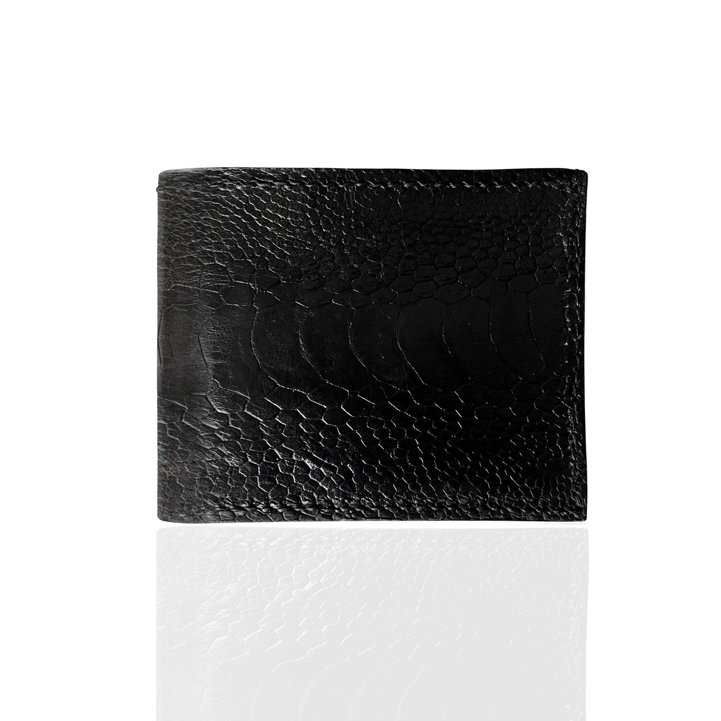 A fusion of ostrich, calfskin, and  chèvre leather, this bifold is the physical manifestation of decadence. Available in 3 breath taking colours, Polar White, Oxblood Red, and Raven Black.
